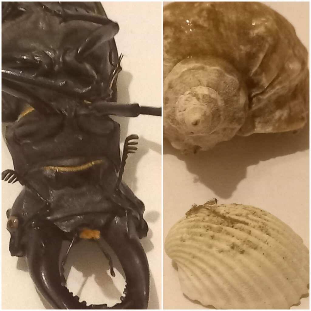 • lupa, přírodní materiály, voda, sklo