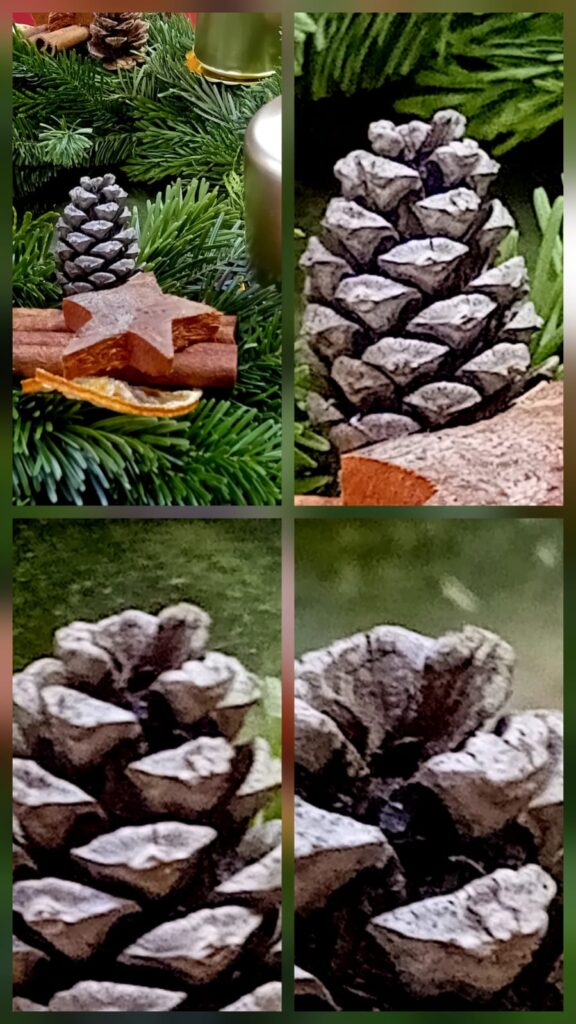 Pomocí lupy a možnosti zvětšení v mobilu jsme pozorovali věci, které máme na adventním věnci, a porovnávali je.