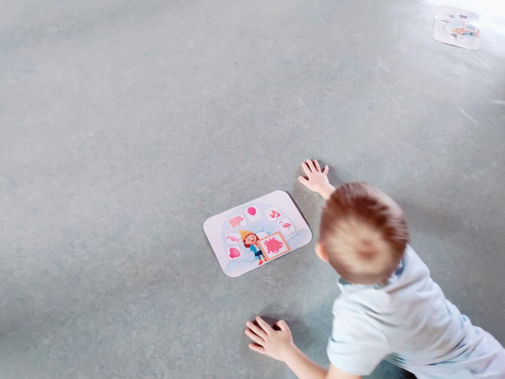 Úkolem dětí je roztřídit obrázky do jednotlivých iglú podle barvy na obrazku.
